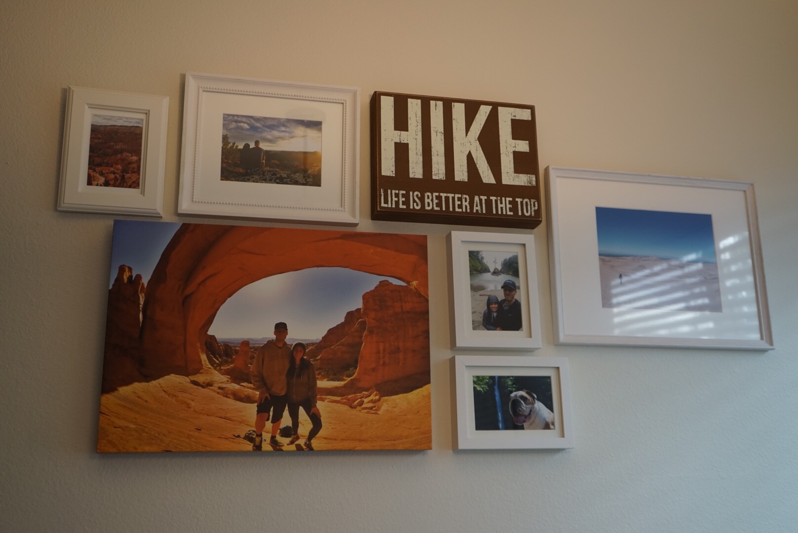 We have a smaller gallery wall in the dining room (small only because I’ve been too lazy to have more photos printed and framed). Drew had a photo of us in Arches National Park blown up and put on canvas then we found a perfect little wall hanging with a hiking quote on it while wandering around Fort Collins. That inspired me to print some photos from our hikes and outdoor adventures for a little gallery wall. There are photos from Great Sand Dunes National Park, the Columbia Gorge, the southwestern-most point of Washington, Golden, CO, and Bryce Canyon National Park. We have so many more, so I need to get a move on!